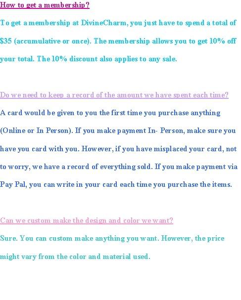 *...For Enquiry...* divinecharm@gmail.com Questions *...Design of the Month...* Dancing Queen *...Links...* crystalglam glamor-ice sugarbaby cranberry princess-lamour candyperfumegirls *...Monthly Design...*November 2005December 2005February 2006March 2006May 2006February 2007 *...Buyer's Information...* Paypal Comments` Powered by TagBoard Message Board Name URL or Email Messages(smilies)